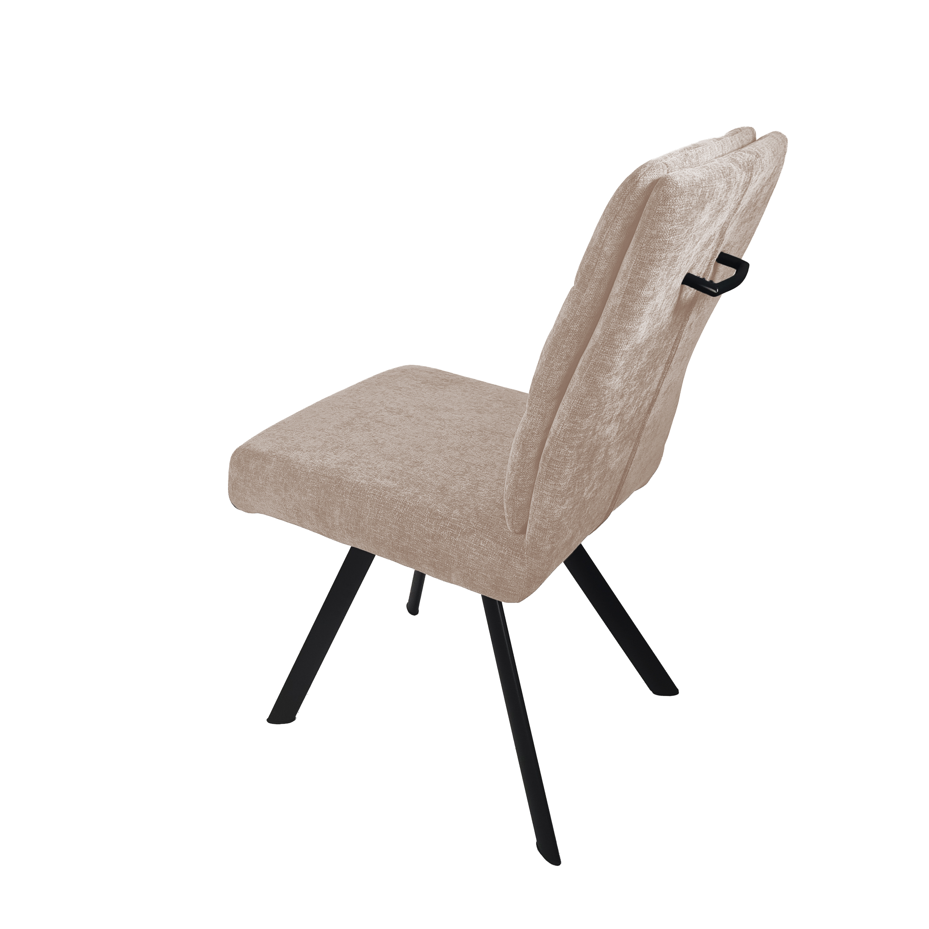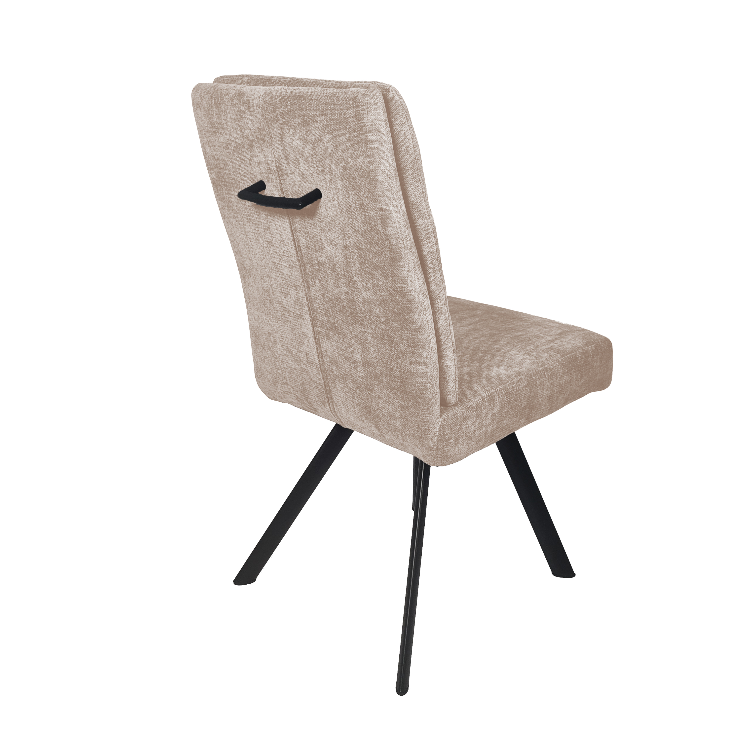 Deze moderne eetkamerstoel met handgreep combineert een strakke vormgeving met een heerlijk zachte zitting. De horizontale stiknaden in de rugleuning geven de stoel een subtiele, stijlvolle structuur, terwijl de brede zitting zorgt voor een ontspannen zitcomfort.