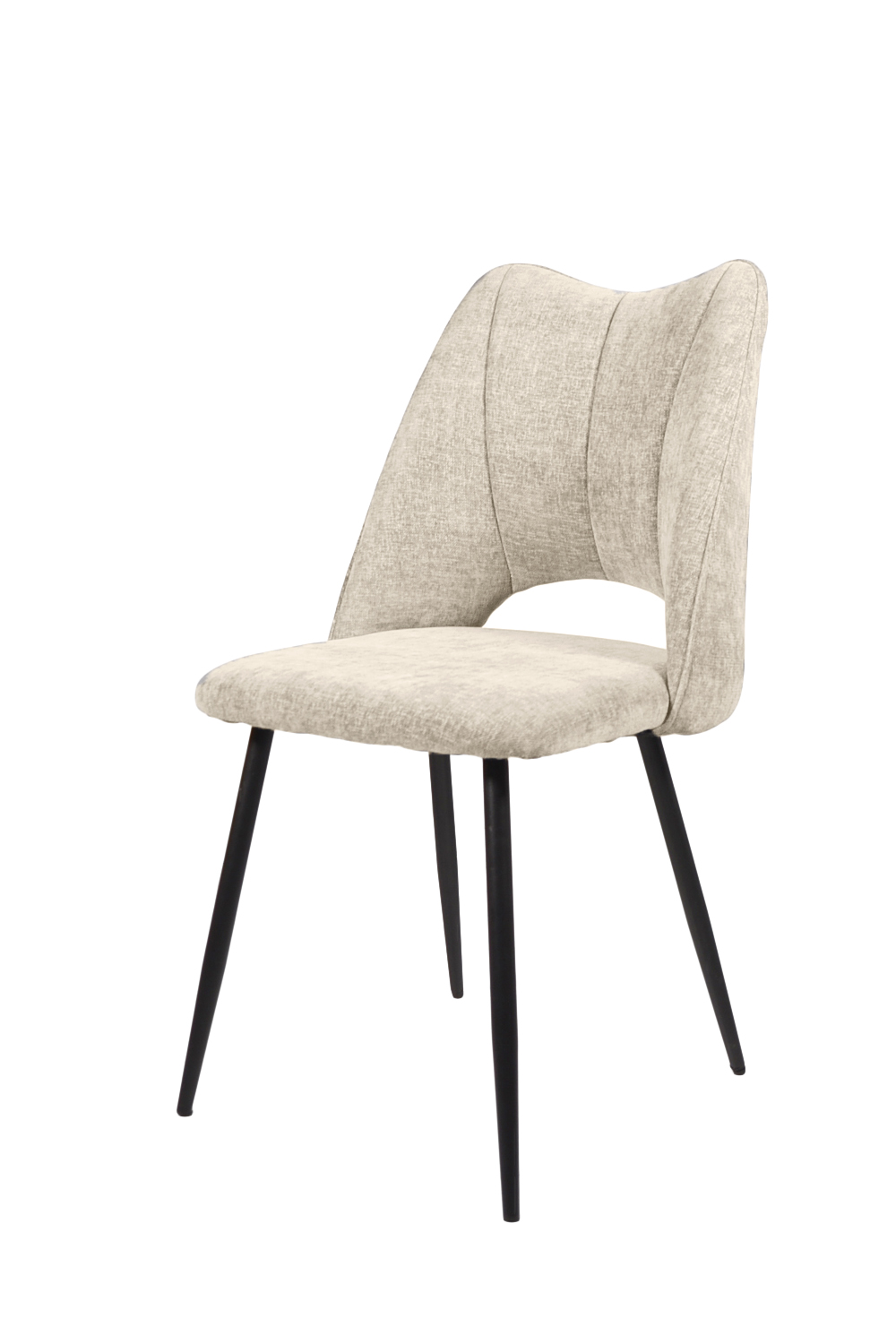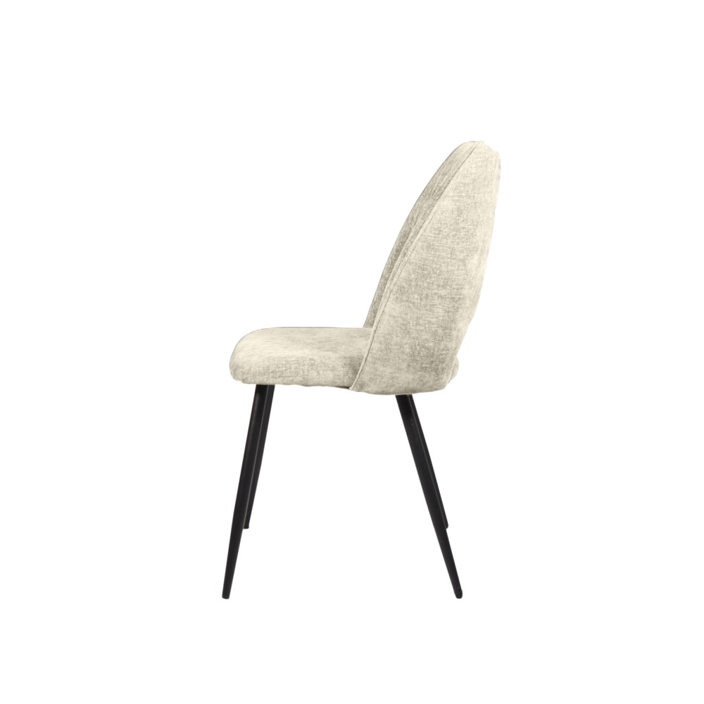 Comfortabele eetkamerstoel in een tijdloze stoffen bekleding en met een gepoedercoat metalen onderstel. Het is een stijlvolle toevoeging aan uw eetkamer, een perfecte balans tussen esthetiek en functionaliteit. Deze stoel is ideaal voor zowel formele diners als gezellige familiemaaltijden en voegt een vleugje verfijning toe aan elke eetruimte.