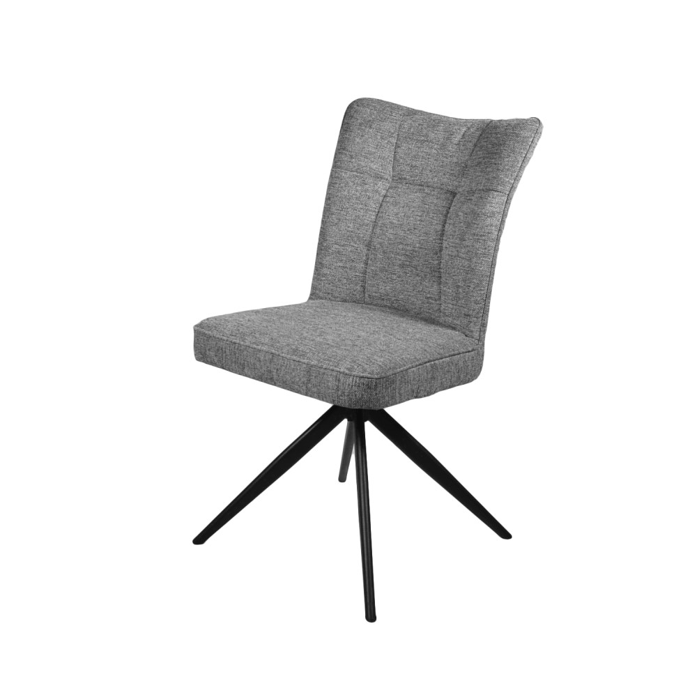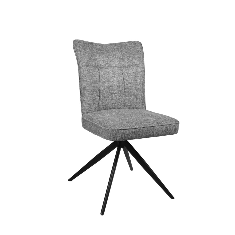 Deze draaistoel is de perfecte combinatie van modern design en comfort. De grijze stoffen bekleding voelt zacht aan en wordt geaccentueerd door subtiele stiknaden, wat zorgt voor een stijlvolle uitstraling.