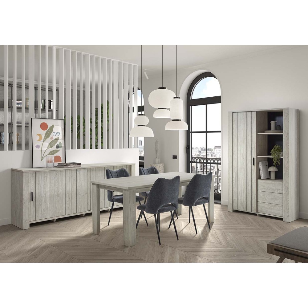 Rustieke vitrinekast met een glijdende deur in een decor van urban snow.